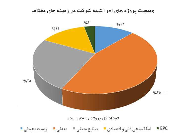 - اجرای بیش از 143 پروژه مطلعاتی، مشاوره، نظارتی و اجرایی